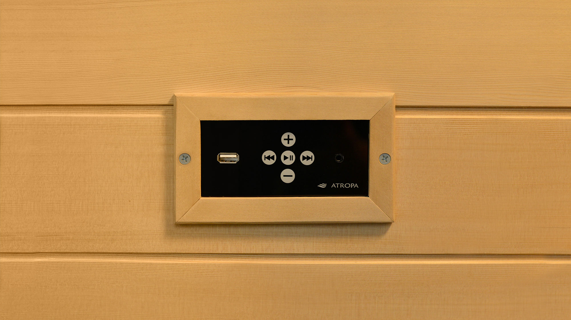 Mit dieser neuen, hochwertigen Musikanlage mit USB, Bluetooth und AUX können Sie in Ihrer Infrarotkabine entspannende Musik geniessen.