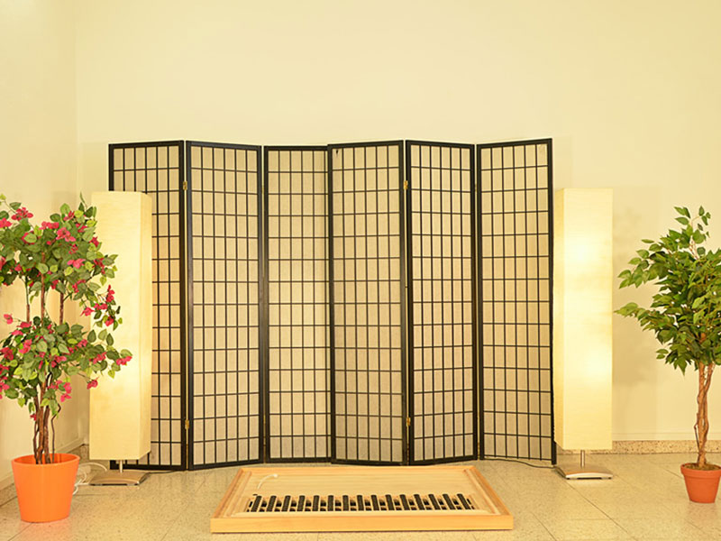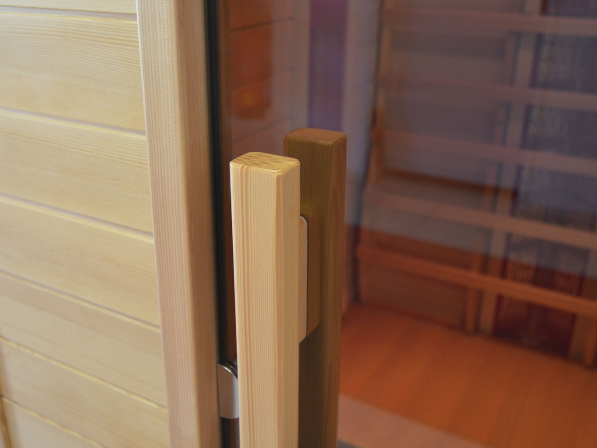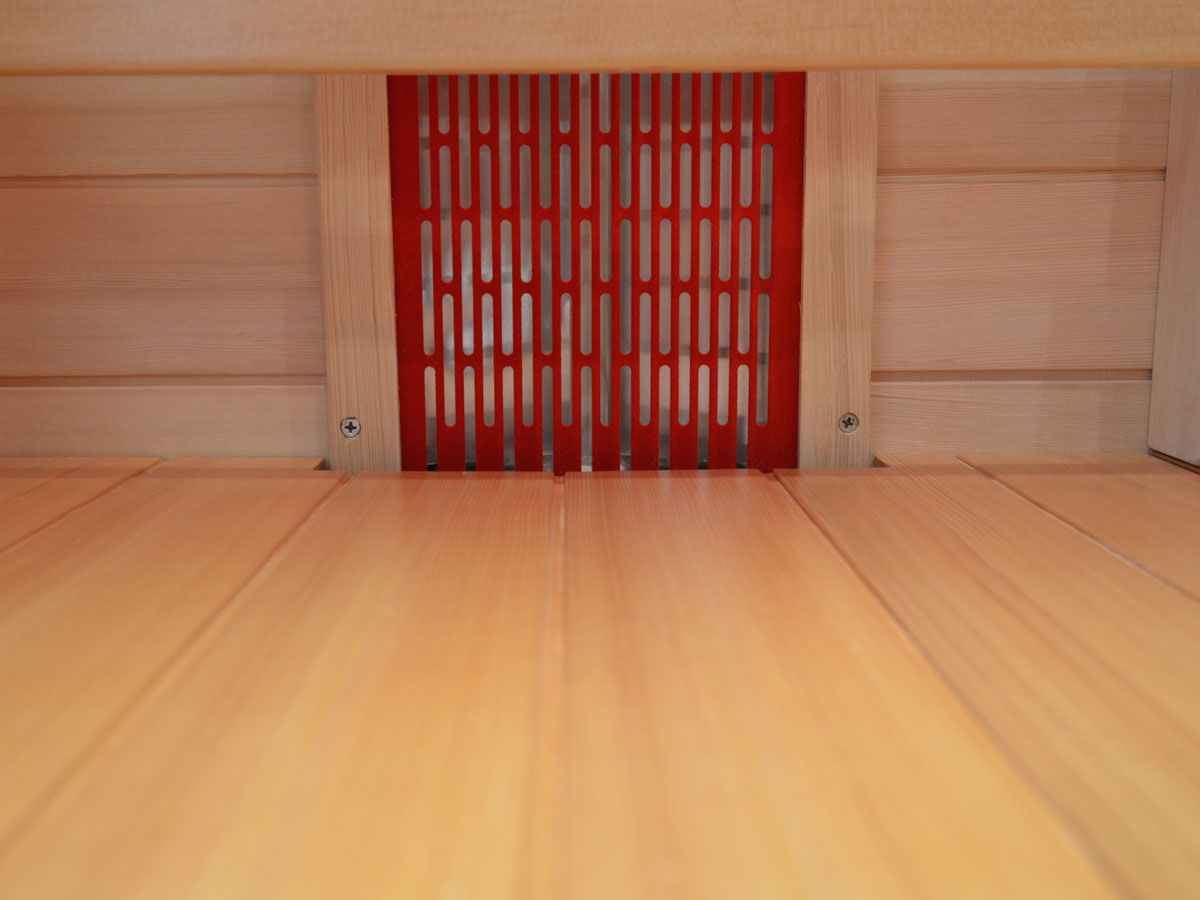 Info: les cabines infrarouges traditionnelles sont équipées d'un treillis de croisillons en bois devant les radiateurs infrarouges. Cette solution simple et économique empêche le rayonnement de la chaleur en profondeur derrière les croisillons, car la chaleur infrarouge ne peut pas traverser le bois.