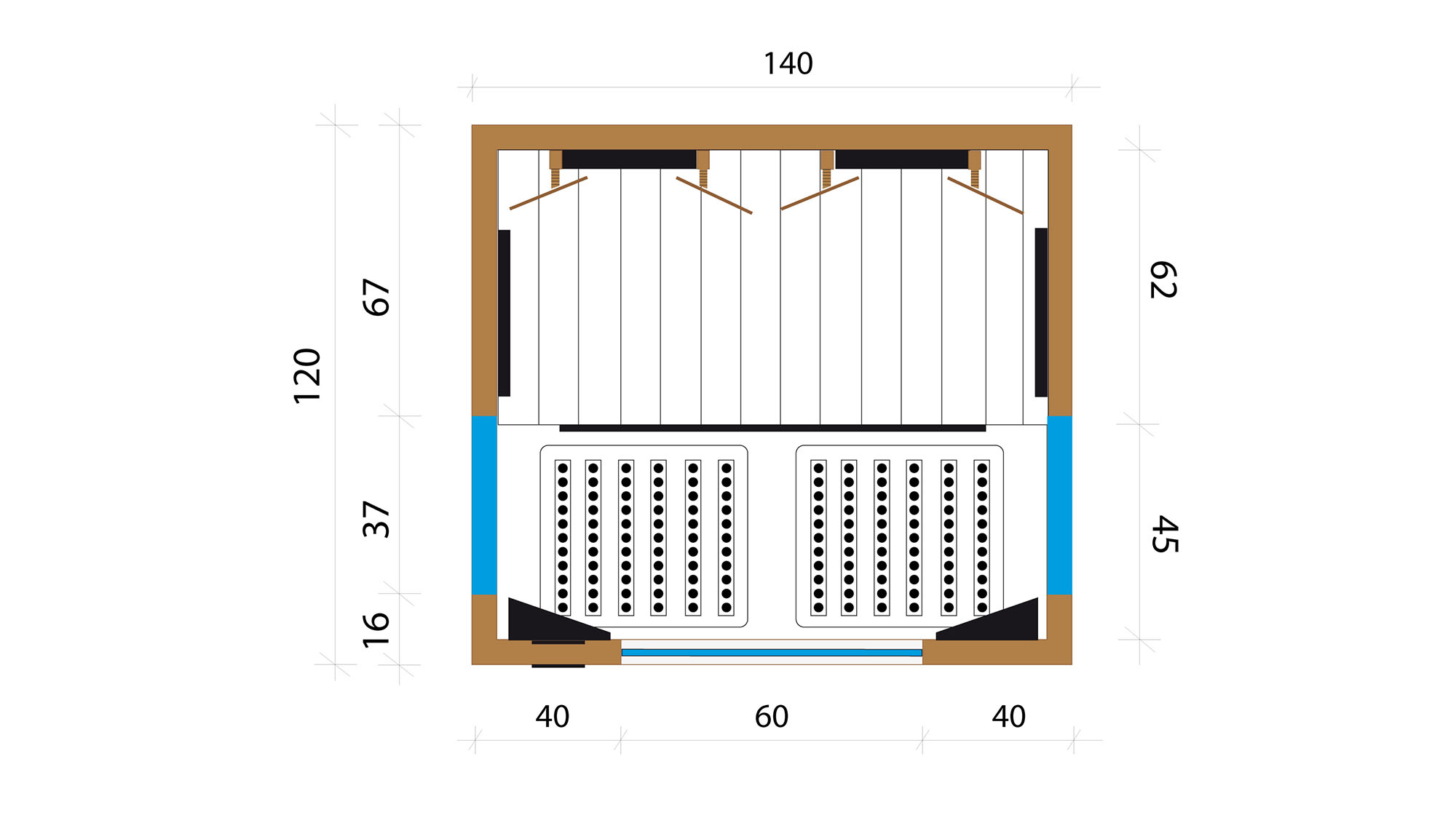 dimensions extérieures : 140 (B) x 120 (T) x 202 (H) cm